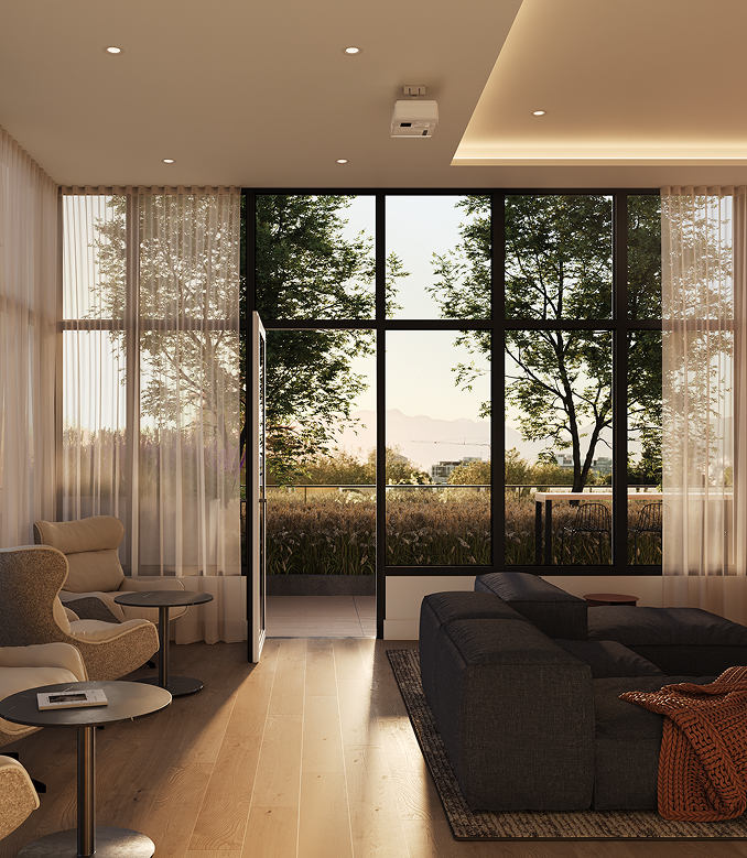 At West 42, amenities are carefully crafted to elevate your lifestyle. Upon entering, the double-height lobby flows into an open lounge featuring an art gallery, creating a welcoming space for relaxation and community connection. The expansive indoor and outdoor amenities at West 42 seamlessly act like an extension of your home and are designed for everyone. Dine on the level 5 Garden Terrace with family & friends, complete with a dining and BBQ area — an ideal setting for socializing and unwinding. Enjoy an exciting sports game with your neighbours on TV in the Terrace Lounge. On the Rooftop Patio, take in the breathtaking mountain views while relaxing around the firepits.