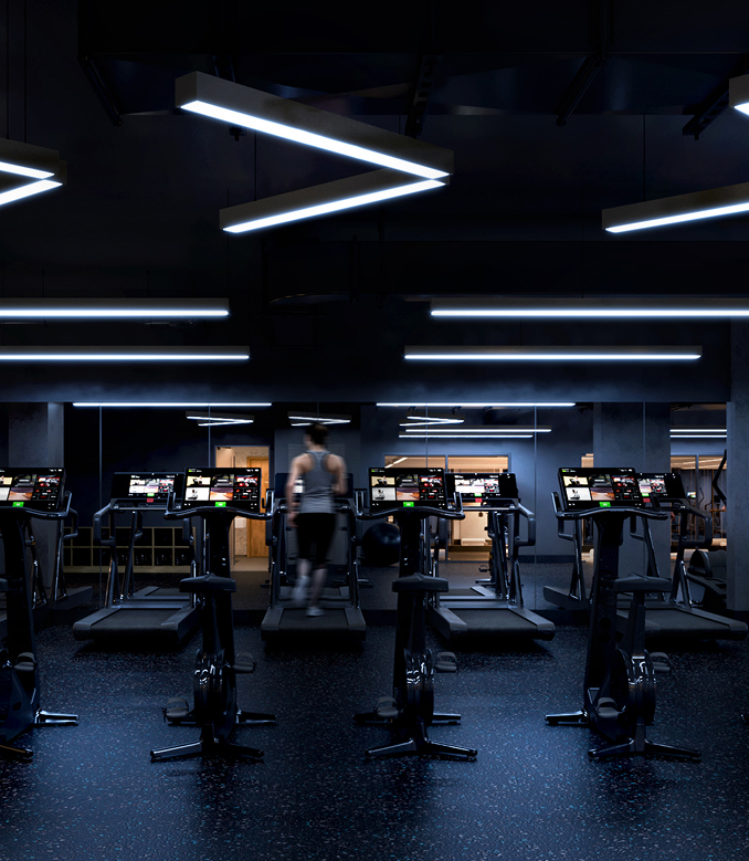 Our commitment to resident well-being is reflected in the thoughtfully designed wellness amenities located in the future East tower. This dedicated space includes a rejuvenating sauna and steam room, a spacious 2,200 square foot fitness centre equipped with state-of-the-art equipment, and a serene yoga and stretch studio. These amenities are shared between both towers and are designed to support an active, balanced lifestyle and foster a sense of community through health and mindfulness.