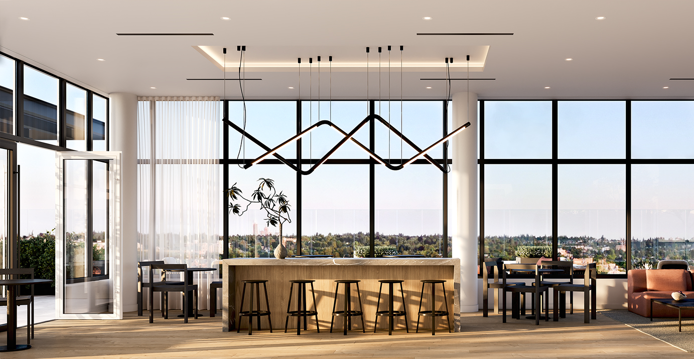 At West 42, amenities are carefully crafted to elevate your lifestyle. Upon entering, the double-height lobby flows into an open lounge featuring an art gallery, creating a welcoming space for relaxation and community connection. The expansive indoor and outdoor amenities at West 42 seamlessly act like an extension of your home and are designed for everyone. Dine on the level 5 Garden Terrace with family & friends, complete with a dining and BBQ area — an ideal setting for socializing and unwinding. Enjoy an exciting sports game with your neighbours on TV in the Terrace Lounge. On the Rooftop Patio, take in the breathtaking mountain views while relaxing around the firepits.